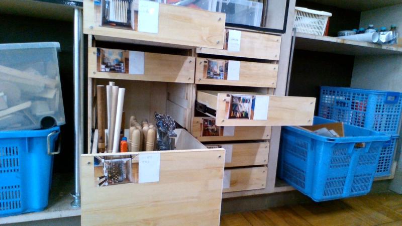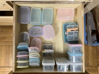 今回、引き出しを作り、収納場所を写真で表示しました。