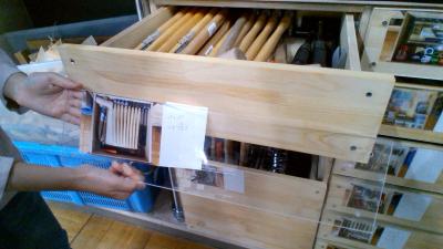 ・引き出しの正面に写真とその引き出しの中身の名前が貼っている